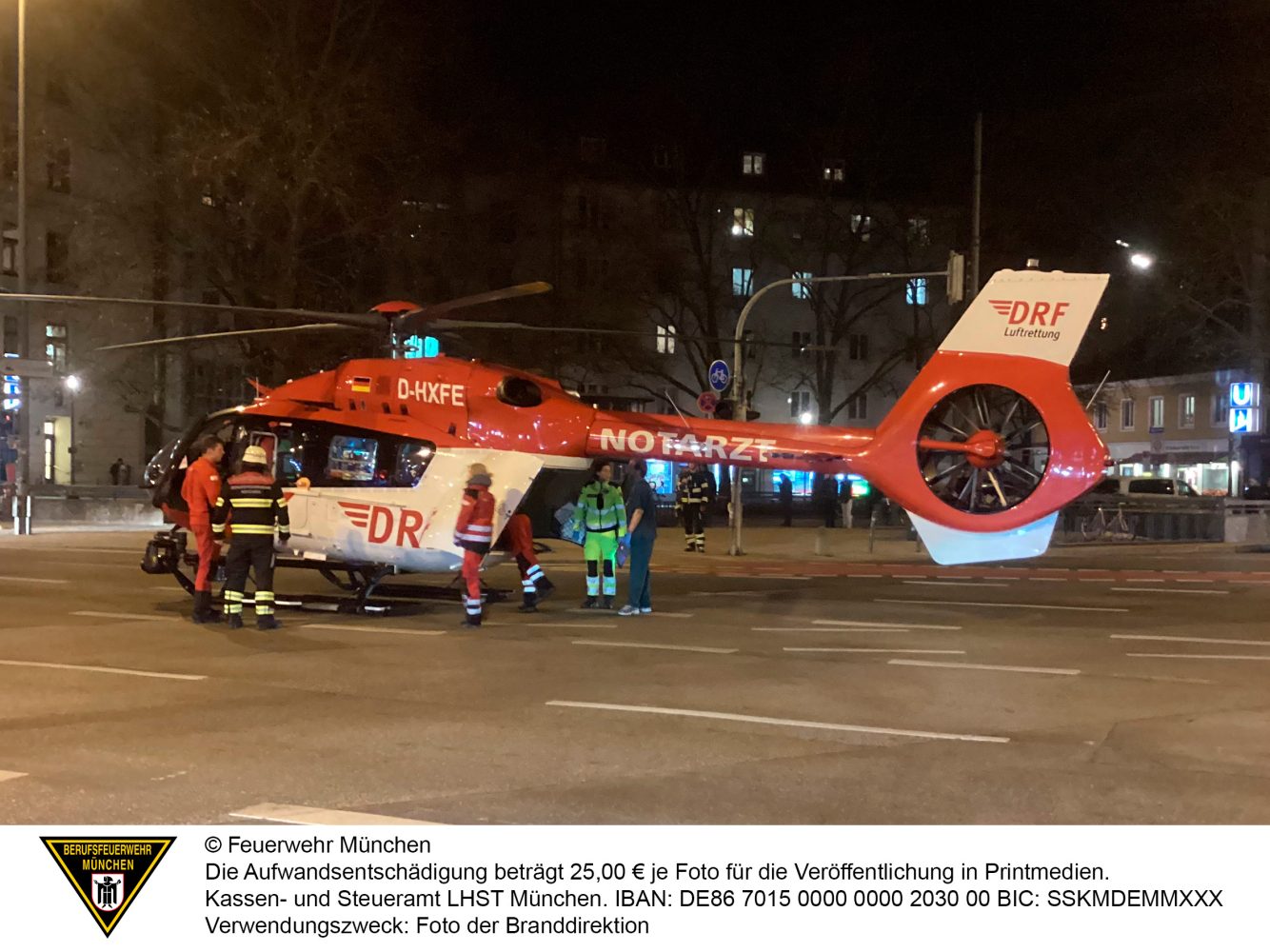Der Intensivtransporthubschrauber „Christoph München“ musste am Freitagabend eine Person in ein Münchner Krankenhaus transportieren. Da die Zielklinik über keinen eigenen Landeplatz verfügt, musste die nächstgelegene Kreuzung als „Parkmöglichkeit“ dienen. Zur Absicherung wurde die Feuerwehr München – unterstützt von der Polizei – hinzugezogen sowie der Rettungsdienst für den Weitertransport. Wenige Minuten nach er Alarmierung war der Goetheplatz bereits komplett gesperrt und so eine reibungslose Rettungskette gewährleistet. Auch der öffentliche Personennahverkehr war betroffen. Da Eile geboten war und die Einschränkungen so gering wie möglich gehalten werden sollten, ging der Ablauf nach der Landung des Hubschraubers routiniert und schnell. Nachdem der Patient an den bodengebundenen Rettungsdienst übergeben wurde, konnte die Sperrung bereits nach rund zehn Minuten wieder freigeben werden.
