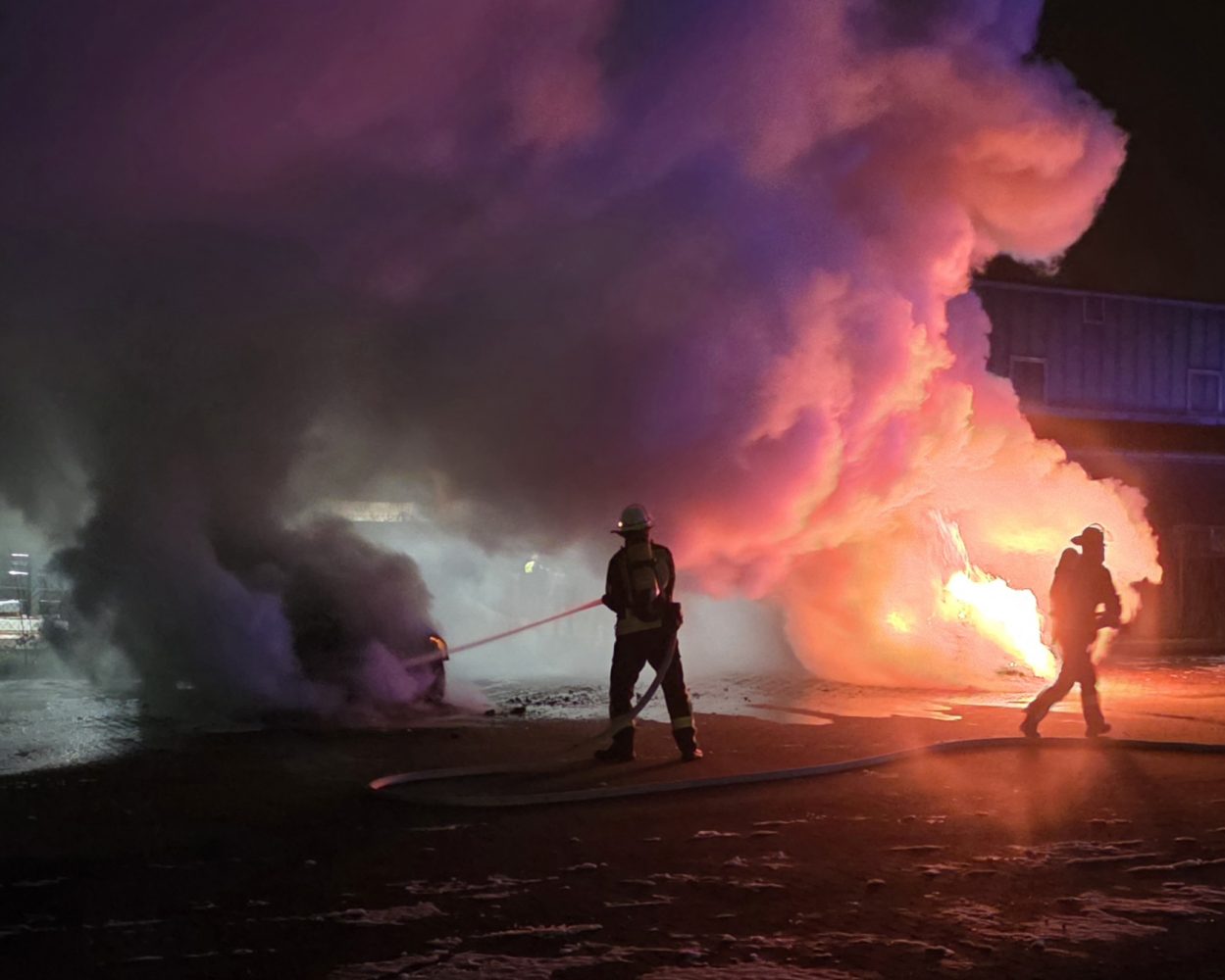 Bei Eintreffen der Einsatzkräfte bestätigte sich die Meldung. Zwei Fahrzeuge mit Verbrennungsmotor brannten im Bereich des Motors in Vollbrand. Die Gefahr einer Ausbreitung auf weitere Fahrzeuge bestand nicht. Im Rahmen der Brandbekämpfung kamen zwei C-Rohre zum Einsatz. Zur Brandursache kann die Feuerwehr keine Angaben machen.
